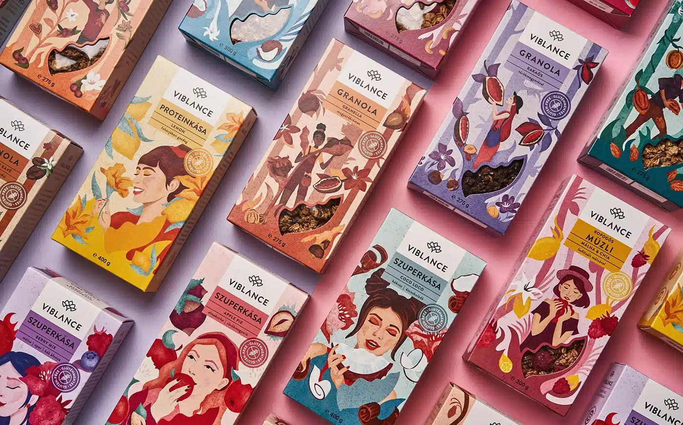 A csomagolás tervezője illusztratív arculatot készített a termékhez. Figurális, részletes és élethű ábrázolással az illusztráció központi szerepet tölt be. A designra jellemző egyedi világ jól megjegyezhető módon van ábrázolva. Minden termékben közös a virág motívum megjelenítése. Központi eleme az erdő, ahol a gyümölcsök és a virágok kivirulnak, egyre nagyobbá válnak. Ez az egészséges életmódra utal – ha megesszük a granolát, mi is kivirulunk, nagyra növünk mint a virágok.